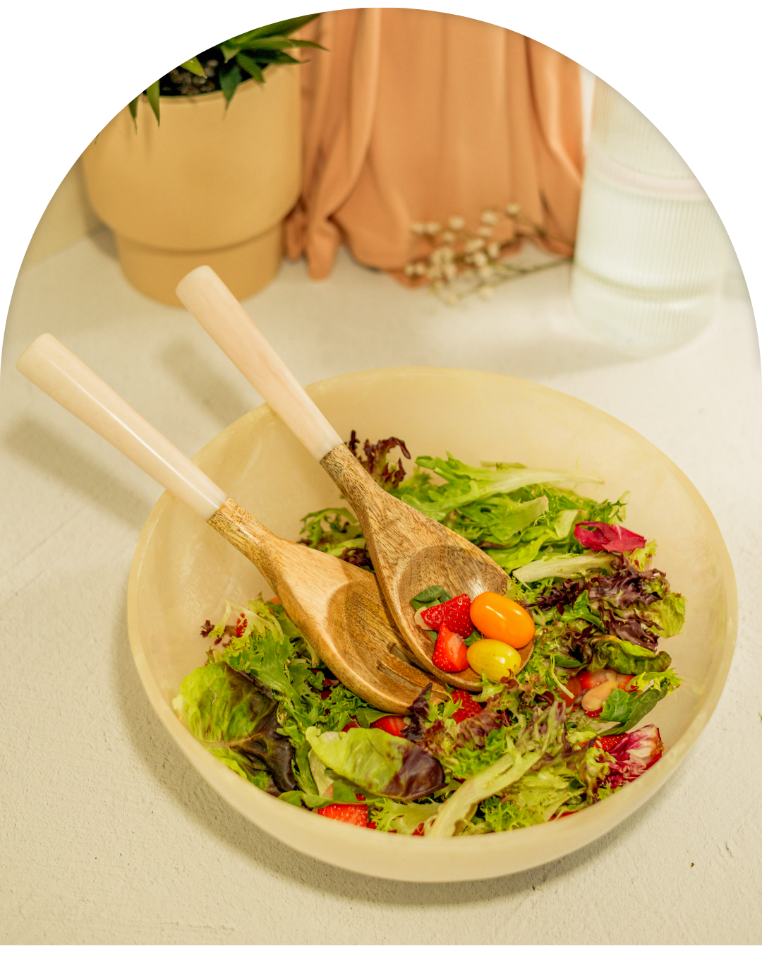 This bowl is absolutely stunning! I brought it to several cookouts this summer and received multiple compliments on this bowl at each party. The mango wood is beautiful, and the smooth white enamel coating makes it aesthetically pop and easy to clean. This set is also durable and easy to transport. I’m obsessed!