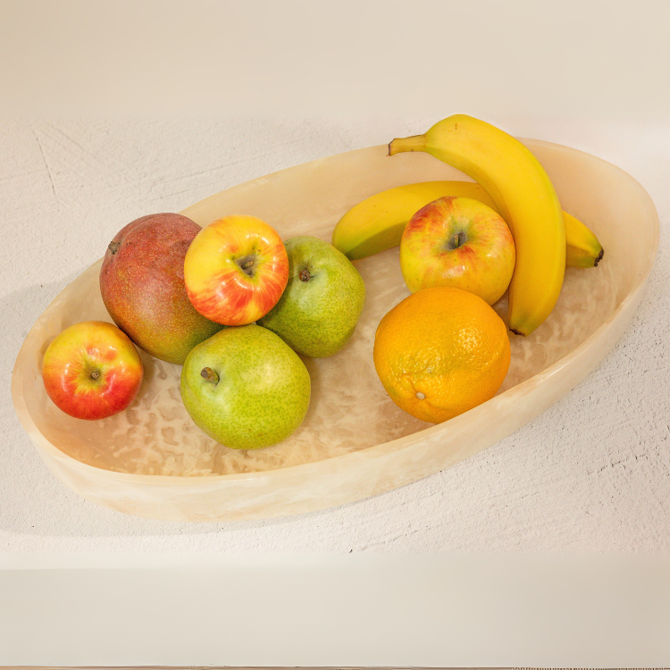 - Resin Oval Bowl: Perfect for salads, fruits, or side dishes, this versatile bowl combines sleek lines with a soft, marbled texture.