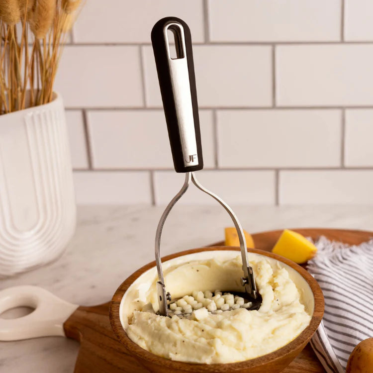 Stainless-Steel Potato Masher: Smoothly mashes potatoes, root vegetables, and more.