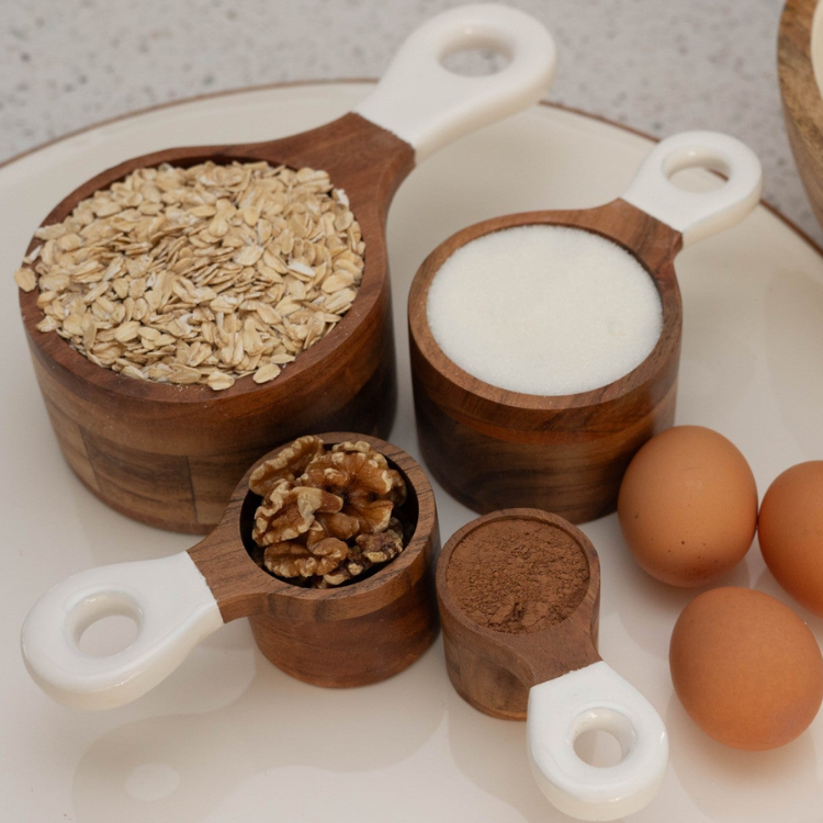 Crafted from high-quality acacia wood, the Jeanne Fitz Measuring Cups are both functional and stylish, featuring a sleek white enamel handle that enhances their durability and charm. The set includes various sizes, perfect for all your baking and cooking needs. The enamel coating not only adds a modern touch but also acts as a protective layer, ensuring resistance to stains and scratches. These measuring cups are designed for easy storage and use, making them a beautiful and practical addition to any kitchen.