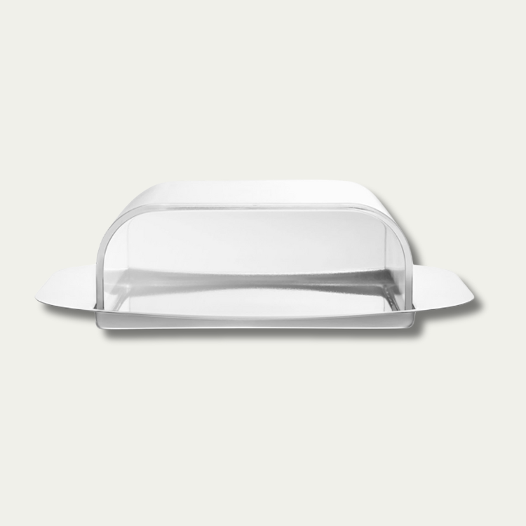 Keep your butter fresh, stylishly stored, and always ready to serve with this sleek stainless steel butter dish. The crystal-clear lid lets you easily check how much butter is left, while keeping it protected and mess-free. Whether you're hosting a dinner party or enjoying your everyday breakfast, this butter dish adds a touch of modern elegance to your table. Fits standard-sized butter sticks and is dishwasher safe for easy cleanup.